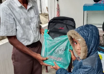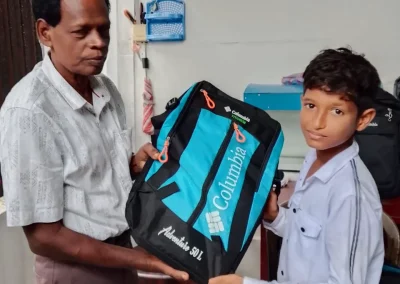 Mit Ehrlichkeit und Verantwortungsbewusstsein haben Sie finanzielle Hilfe geleistet, um wichtige Bildungsutensilien bereitzustellen: Übungshefte und Schultaschen für insgesamt 20 Schulkinder, darunter zwei Kinder eines Vaters mit Behinderung, der im Distrikt Batticaloa lebt, sowie 18 Schüler der Klassen 1 bis 11, die unter der Armutsgrenze in den Gebieten Thevanagar, Anpuvelipuram, Konesapuri, Ganesh Veethy, Palaiyoottu und Puliyankulam im Distrikt Trincomalee leben.